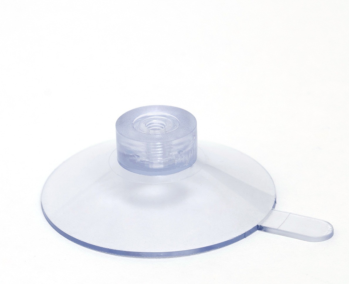 Saugnapf Ø 50mm, transparent, mit Löselasche - mit eingespritzter Rändelmutter M4 |