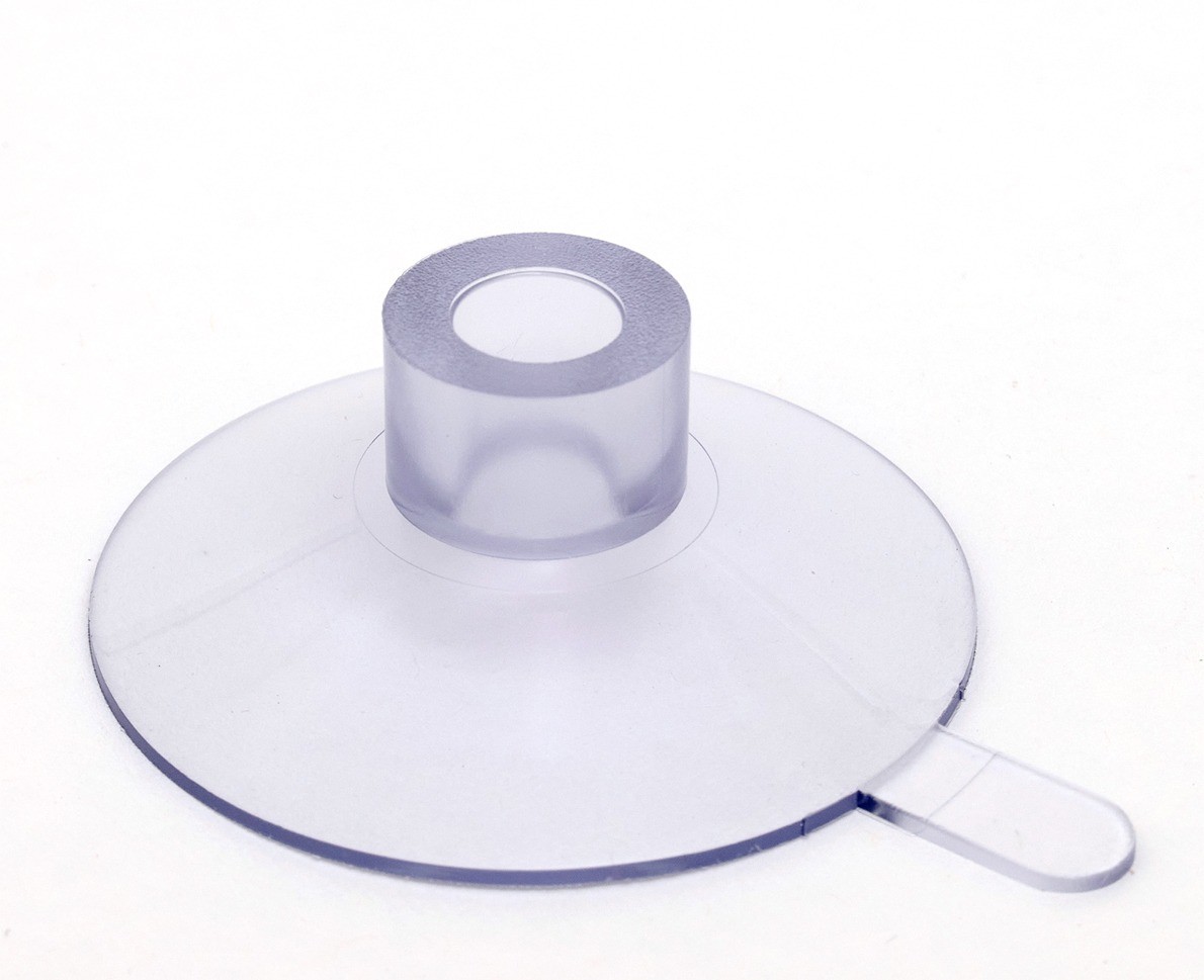 Saugnapf Ø 50mm, transparent, mit Löselasche - mit Loch Ø 9mm x 12mm tief |
